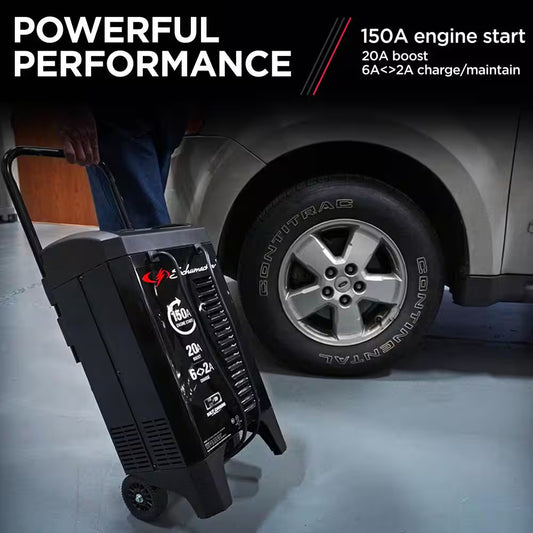 Automotive 12-Volt 150-Amp Fully Automatic Wheeled Jump Starter and Battery Charger with 20-Amp Boost